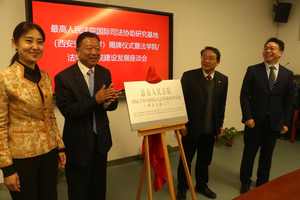 4月8日,在B体育官网平台迎来建校125周年暨迁校65周年之际,最高人民法院国际合作局与B体育官网平台合作共建最高人民法院国际合作局国际司法协助研究基地(B体育官网平台)揭牌仪式暨B体育官网平台建设发展座谈会在创新港法学研究院举行。海南省人民检察院前检察长路志强、最高人民法院国际合作局局长兼第六巡回法庭第一副庭长高晓力、B体育官网平台副校长席光、B体育官网平台兼国际教育学院院长单文华共同为研究基地揭牌。单文华院长主持会议。