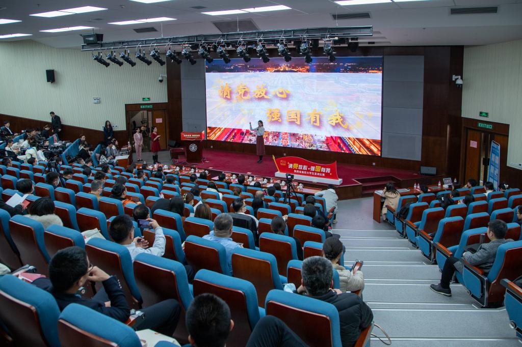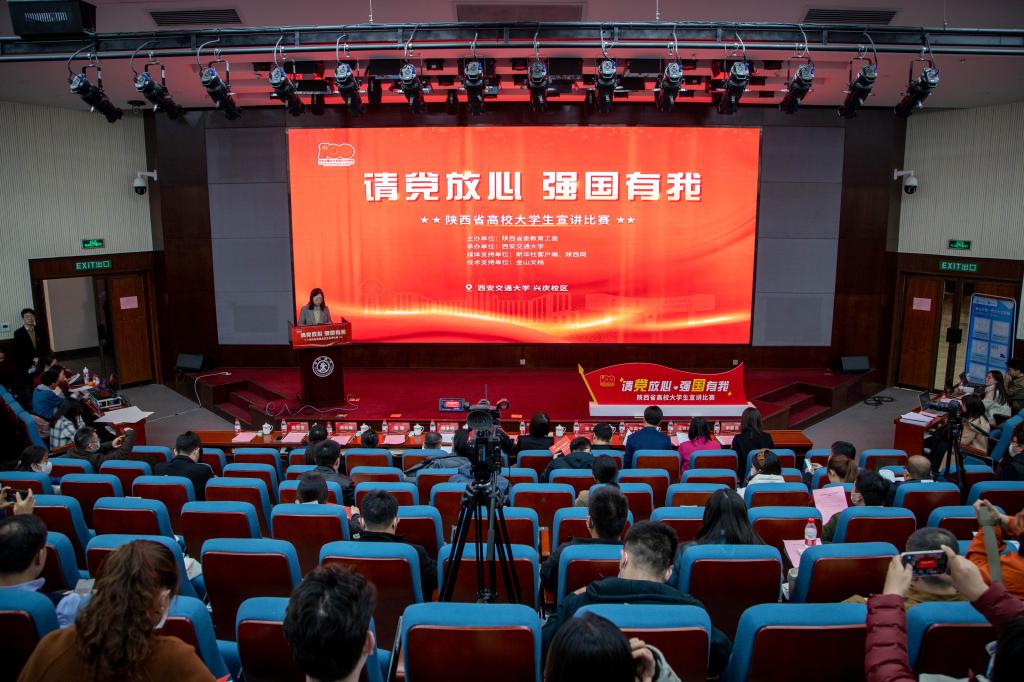 12月2日下午,在深入学习党的十九届六中全会精神之际,为了推进学习党的十九届六中全会精神及党史学习教育走深走实,陕西省高校“请党放心强国有我”大学生宣讲比赛现场总决赛于B体育官网平台兴庆校区举办。本次活动由中共陕西省委教育工委主办、B体育官网平台承办,新华社客户端、陕西网给予了媒体支持。