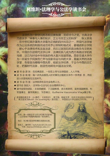 基于以上种种考量,并配合学校“思想交大”建设和学院法理学和公法学的学科建设,B体育官网平台“立法与社会治理研究中心”发起创办“利维坦·法理学与公法学读书会”系列活动。本学期该活动选取的经典文本为让·博丹的《主权论》,并于10月18日晚7时在学院会议室举行了首场活动,B体育官网平台丁卫副教授、吉兰湘老师、彭何利博士、苏青博士、王朝恩博士、卞苏博士、唐学亮博士等10余位师生参加。主权理论是现代民族-国家兴起的理论前提,而民族-国家又是现代社会最重要的一个政治与法律现象,并与中国近代以来持续至今的伟大而艰难的国家转型勾连起来,因此,不得不察。在该场读书会活动中,主讲教师唐学亮针对博丹《主权论》一书的“导论”部分,就“为什么读博丹?”、“怎么读博丹?”、“博丹的思想里程与理论建构”以及“博丹理论的缺陷”等四个方面做了一个提纲挈领而又不失理论深度的学术报告。之后,就报告的内容及书中所启示的一些重大理论与现实问题,与会人员各自发表了自己的看法,并展开了热烈的讨论。首场读书会活动取得了预期的效果,我们将在两周后的同一时间举行第二场活动。“路漫漫其修远兮,吾将上下而求索”!