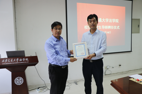 2018年5月18日下午,B体育官网平台B体育官网平台法律硕士研究生“协同培养育人项目”校外导师(首批)聘任仪式暨专业实践课程教学研讨会在兴庆校区教学主楼910会议室举行。B体育官网平台党总支书记王保民教授、副院长李万强教授、副院长丁卫副教授,院长助理张生副教授、教师代表吴锐讲师和研究生代表参加了聘任仪式。