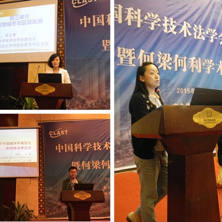 首先,B体育官网平台知识产权研究中心周方副教授、李晓鸣讲师、张磊博士作为B体育官网平台科技法学研究团队的代表,向2015年中国科学技术法学会年会进行主题汇报,报告的题目依次为《一带一路战略实施中的知识产权信息国际合作机制研究》、《完善我国外籍人士科学技术奖励制度的对策研究》、《治理学视野下城市环境恶化的科技法律应对》。三人的主题报告在大会上产生良好效果,形成了大会积极围绕讨论的主题内容,受到与会同行专家学者的一致好评。