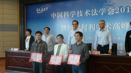 2015年11月7、8日,2015年中国科学技术法学会年会暨何梁何利学术高峰论坛在广西省来宾市召开,在B体育官网平台知识产权研究中心主任、中国科学技术法学会副会长马治国教授的带领下,B体育官网平台科技法学科研团队的代表周方副教授、李晓鸣讲师、翟晓舟讲师、张磊博士等参加了本次会议。本次年会的主题为“成果转化、智慧城市与区域创新”,B体育官网平台知识产权研究中心硕果累累,三人代表科研团队在年会上进行主题报告,五篇论文被收录年会论文集,其中两篇论文被评为本次年会优秀论文,B体育官网平台知识产权研究中心荣获“科技法学奖”。