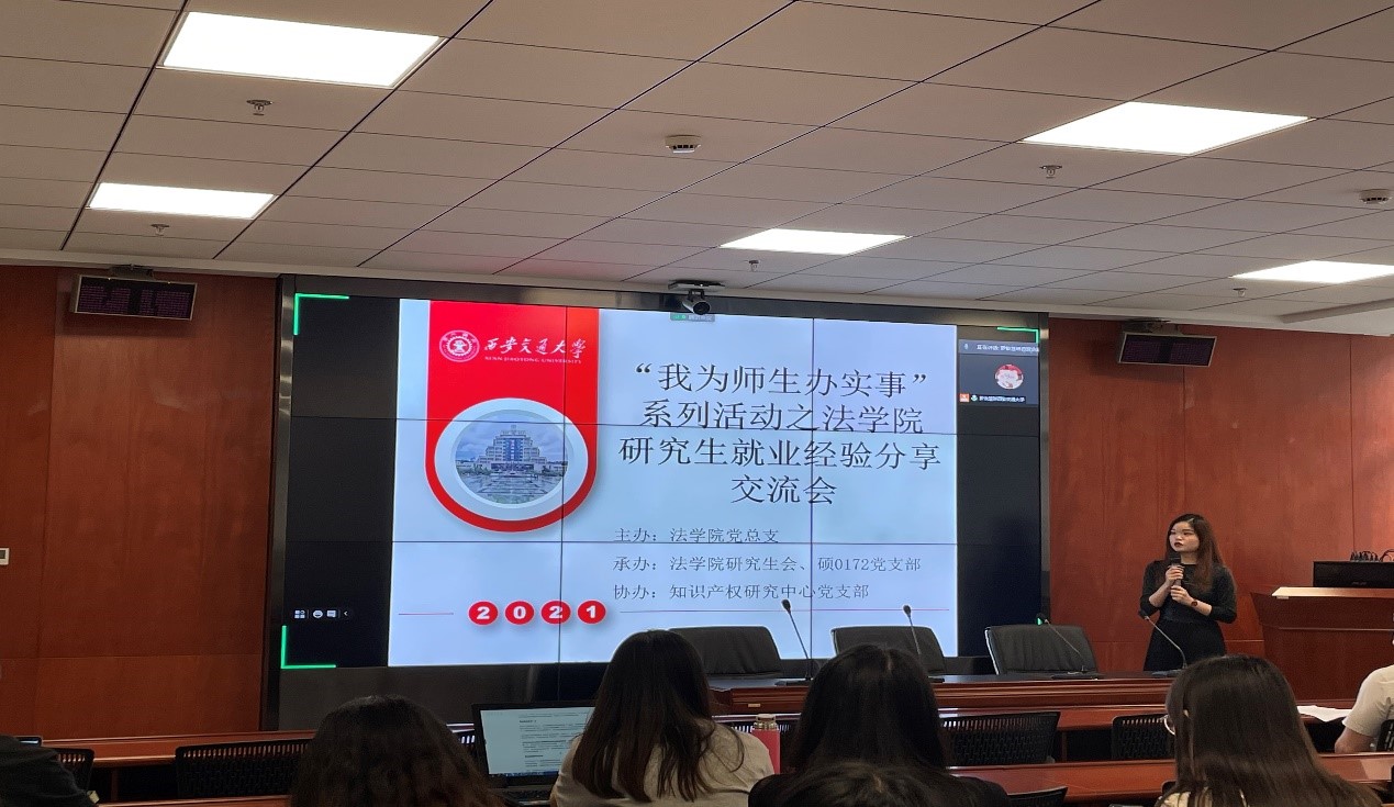 为了帮助同学们进一步了解法学专业就业形势,拓宽就业信息渠道,解决求职困惑,B体育官网平台于2021年5月26日下午,在涵英楼3004举办了研究生就业经验分享交流会。