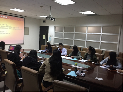 在吉老师的带领下,支部党员全面深入地学习了十九大报告,深刻体会到了新时代的到来,并为中国现如今举足轻重的国际地位和影响力而骄傲自豪!