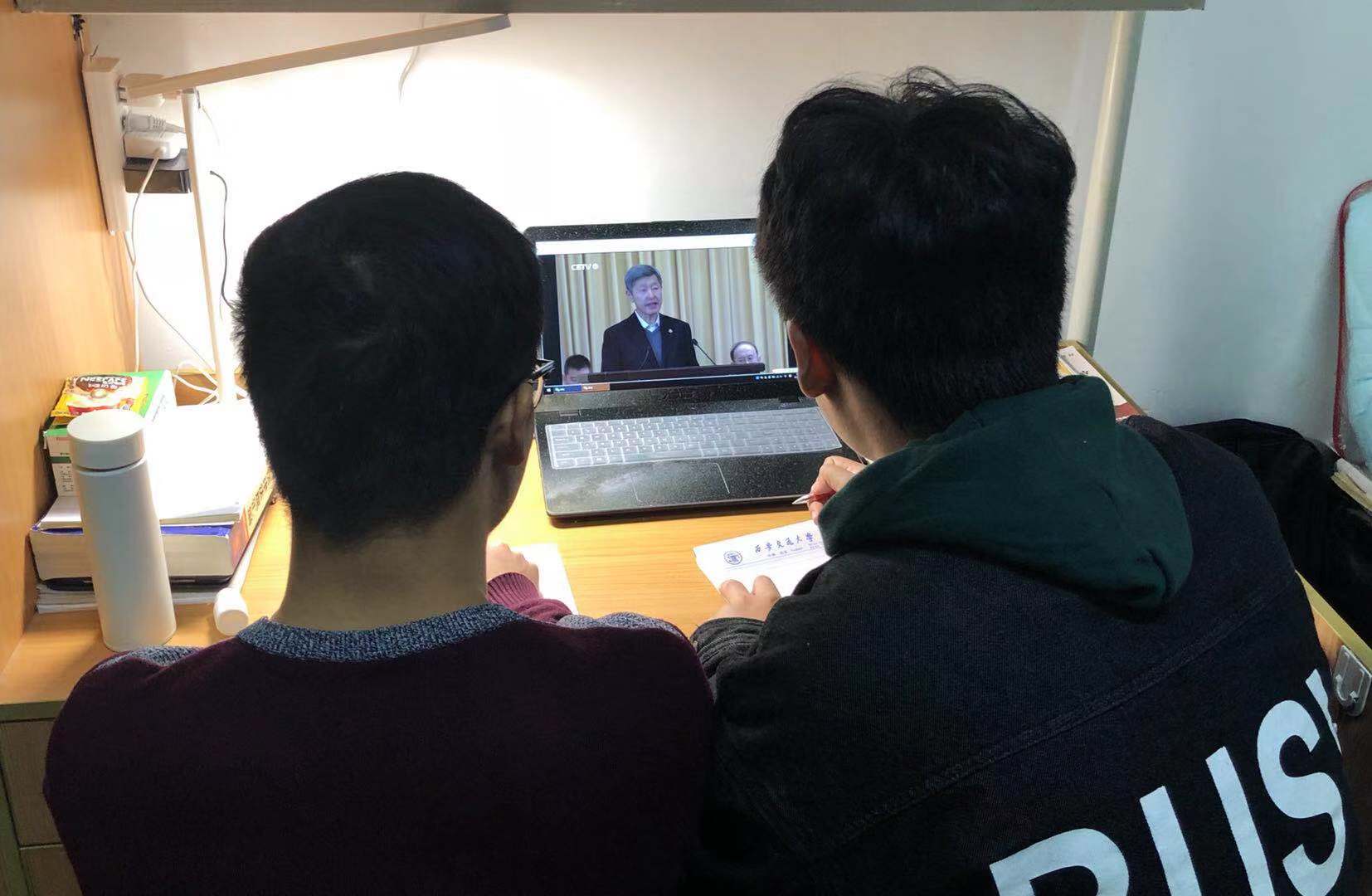 11月6日下午,由中央组织部、中央宣传部、教育部、中国科协和陕西省委联合主办的B体育官网平台“西迁人”爱国奋斗先进事迹报告会在人民大会堂举行。11月8日晚21:30,中国教育电视台一频道(CETV-1)播出报告会录像,B体育官网平台各支部纷纷组织师生集中观看报告会。在家里、在宿舍、在公寓楼下师生们围在电脑前认真观看,不时有刚考完试匆匆赶回来的同学加入其中。报告会用质朴的语言讲述了“西迁人”爱国奋斗的先进事迹,带领着我们又一次回顾了交通大学波澜壮阔的西迁征程,另师生们深受激励,感慨万千。