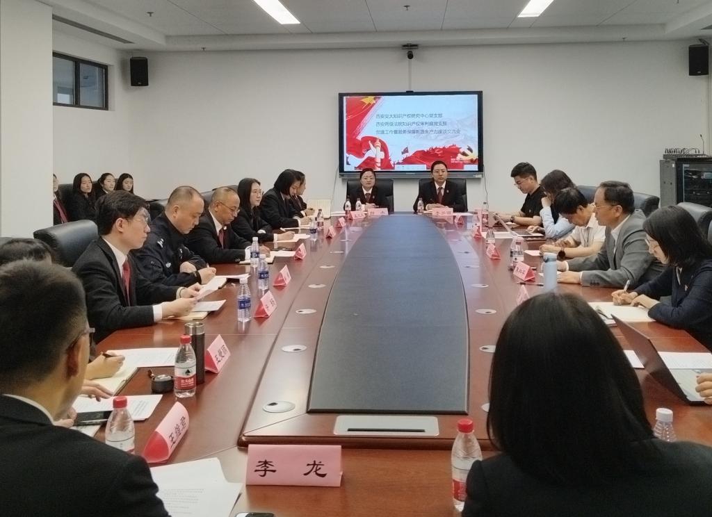 2024年4月15日,B体育官网平台知识产权研究中心党支部联合西安市中级人民法院、新城区人民法院、碑林区人民法院、莲湖区人民法院、未央区人民法院、雁塔区人民法院、长安区人民法院知识产权审判庭党支部在中国西部科技创新港开展“党建工作暨服务保障新质生产力”座谈交流会。