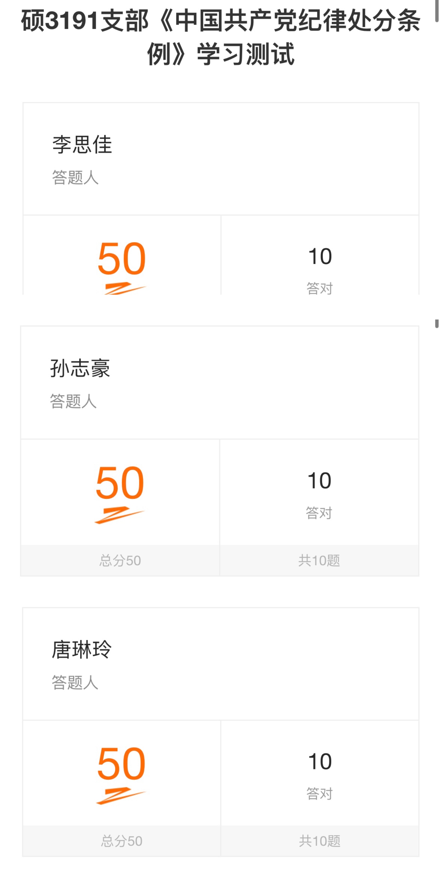 硕3191党支部党员邓书婷:“通过这次学习新修订的《条例》,我深刻感受到了党的纪律建设的重要性和紧迫性。我将以更加坚定的信念、更加务实的作风、更加饱满的热情投入到今后的学习中去,为实现中华民族伟大复兴的中国梦贡献自己的力量。”