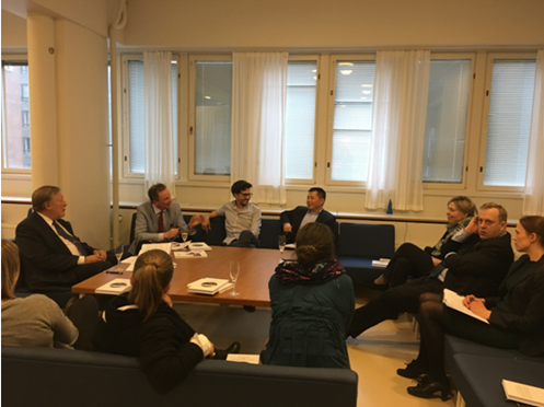 2017年4月25日,我院青年教师杜军强博士应邀参加芬兰最高行政法院荣休院长、芬兰法治 (ROLFI)创建人Pekka Hallberg所著《法治与可持续发展》一书的新书发布会,并作为评论人发言。该新书发布会在赫尔辛基大学B体育官网平台大楼2楼会议室举行,由赫尔辛基大学B体育官网平台院长Kimmo Nuotio 主持,另一评论人Guilherme研究员、中国法中心主任 Ulla Liukkunen教授以及多名其他研究人员并博士生参加发布会。