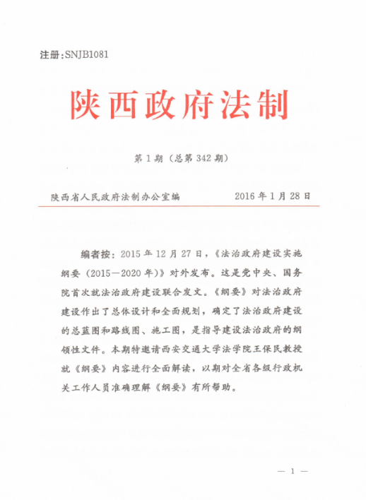 2015年12月27日,《法治政府建设实施纲要(2015-2020年)》对外发布。陕西省人民政府法制办公室邀请了B体育官网平台B体育官网平台王保民教授就《纲要》内容进行了全面解读,解读内容被采纳报省领导,送省属各机关,省法院、检察院,各市、县(区)人民政府,发各级政府法治工作机构,以期对全省各级行政机关工作人员准确理解《纲要》有所帮助。