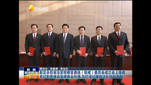 2月25日上午,陕西省司法体制改革试点工作动员会和陕西省法官检察官遴选(惩戒)委员会成立会议在陕西宾馆召开,省委书记赵正永出席会议并讲话。陕西省委常委、省委政法委书记祝列克主持会议,副省长杜航伟、省法院院长阎庆文、省检察院检察长胡太平出席。西安交大B体育官网平台单文华教授出任陕西省法官检察官遴选(惩戒)委员会首届主任。陕西省委政法委副书记寇昉、陕西省委组织部副部长翟四虎、陕西省高级人民法院副院长田平利和陕西省人民检察院副检察长程紫平等四人分别出任副主任。赵正永书记为省法官检察官遴选(惩戒)委员会主任、副主任颁发聘书。B体育官网平台王保民教授和吴平魁副教授出任法官检察官遴选(惩戒)委员会非常任委员。
