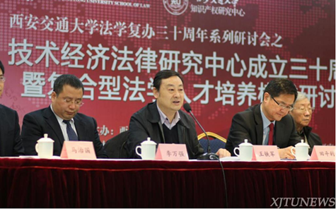 研讨会于28日上午在南洋大酒店开幕。中国工程院院士汪应洛、陕西省委政法委副书记、综治办主任王永明、陕西省高级人民法院副院长田平利、陕西省知识产权局局长巨拴科、西安交大副校长王铁军、陕西省人大教科文卫委员会办公室主任赵建军、西安市法学会专职副会长黄必方、西安交大B体育官网平台副院长李万强等科技法学、知识产权法学界著名专家学者以及相关校友等一百五十余人出席了开幕式。开幕式由西安交大技术经济法律研究中心、知识产权研究中心主任马治国主持。