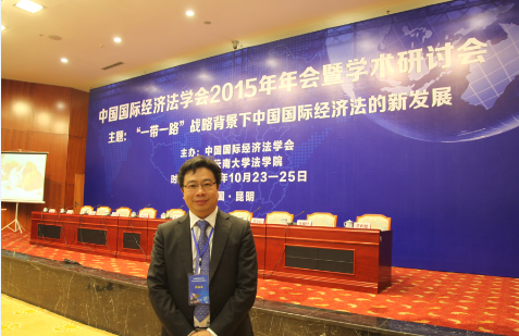 2015年10月24日至25日,中国国际经济法学会2015年年会在云南昆明召开。我校B体育官网平台院长单文华教授,副院长李万强教授以及多名青年教师与会。会上,中国国际经济法学会举行第六届理事会换届选举,单文华教授当选中国国际经济法学会副会长,李万强教授、王江雨教授当选常务理事,刘桥教授、张生博士、陈虹睿博士和王朝恩博士当选理事。