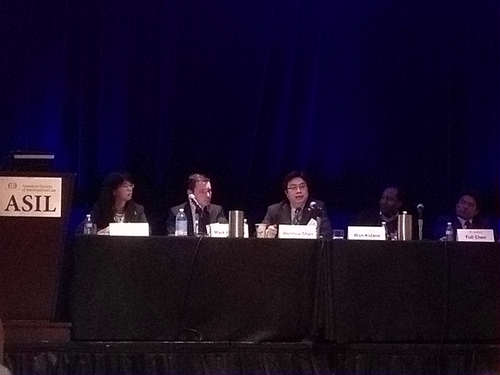 围绕以上问题,此届年会共举办60余场专题研讨会,共邀请了来自世界各地的近200名学者作为报告人,其规模与层次均超过了往届。单文华教授主持的是其中的“中非投资条约与争端解决:多极拼图的困境”专题研讨会。该讨论会由美国国际法学会非洲兴趣小组、亚太区域兴趣小组、国际法院和仲裁庭兴趣小组、国际经济法兴趣小组和争端解决兴趣小组等5个小组共同组织,是整个年会向全球视频直播的12场专题研讨会之一。研讨会主要探讨在全球国际投资法转型的大背景下,中非投资条约的显著内容与特征及其在保护中国对非洲投资急剧上升的投资并解决相关争端过程中所发挥的重要作用,并在此基础上,探讨中国投资条约与“南南合作”式投资条约对全球国际投资法发展演进的启迪意义与贡献。讨论会发言人包括中国驻美国大使馆经商处参赞陈福利、来自埃塞俄比亚的美国西雅图大学B体育官网平台副教授Won Kidane,美国外交部NAFTA投资争端解决部前部长Mark Feldmen和厦门大学陈辉萍教授。在单文华教授的主持和带动下,与会报告人和参与人围绕以上议题展开了热烈的讨论,会场气氛十分活跃。会后,主办方专门写信致谢,认为这场研讨会是“一次很有意思的讨论,激起了大量的兴趣和论辩。正是美国国际法学会这样的学术论坛应有的研讨会。”(“a highly interesting discussion that generated a lot of interest and debate. Exactly as it should be in an academic forum like ASIL.”)