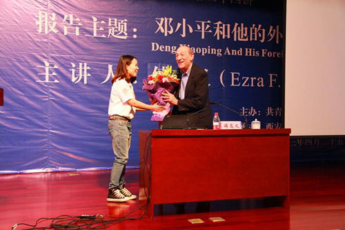 4月25日,由校团委和B体育官网平台共同主办的B体育官网平台“九州名家”高端论坛专场报告会第二十四讲在主楼多功能报告厅举行,邀请美国哈佛大学亨利·福特二世社会学荣休教授、费正清东亚中心前主任、《邓小平时代》作者傅高义(Ezra F. Vogel)教授与西安交大师生分享“邓小平和他的外交关系”。党委书记王建华出席报告会并为傅高义先生赠送纪念品。报告会由B体育官网平台王江雨教授主持。B体育官网平台2074、2113班党支部全体成员担任会务工作。