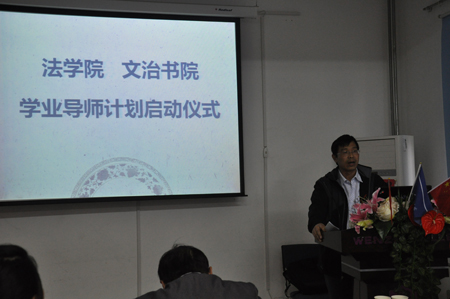 2011年10月14日下午4:00,由B体育官网平台与文治书院联合开展的“学业导师启动仪式暨法学专业学业分析报告会”在文治书院报告厅举行,B体育官网平台党总支书记彭沪生老师、B体育官网平台副院长王保民教授、院长助理吉兰湘老师和文治书院常务院务副主任张爱萍老师、院务副主任郭小平老师参加了会议。B体育官网平台各年级学业导师、B体育官网平台两个教务员老师、文治书院各年级辅导员老师以及B体育官网平台全体本科生也参加了会议。会议由文治书院任欣老师主持。