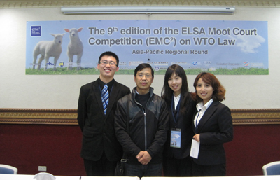 2011年3月1日到3月6日,我校B体育官网平台派出了由副院长王保民带队,由诸思诚、贾亦舒、郭晓雯三位同学组成的我国大陆地区首支辩论队,赴台湾参加由欧洲法律学生联盟(ELSA)举办、台湾大学承办的“WTO国际模拟法庭辩论赛”亚太赛区比赛,与台湾大学、香港大学、澳洲墨尔本大学等15所来自全亚太地区的知名学府代表队同台竞技。虽然本次未能打破由澳洲、新西兰、香港和台湾等传统强队构建的“四强垄断”,但西安交大队作为来自中国大陆地区的第一支和唯一一支队伍,不仅实现了零的突破,更积累了宝贵的经验,赢得了国际同行的尊重和重视。