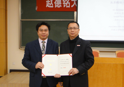 日前,上海昊理文律师事务所高级合伙人赵德铭律师来我院访问。12月20日下午,在主楼A103教室,赵德铭博士受聘为我校兼职教授,并面向B体育官网平台师生做 《高端法律服务市场上商务律师的典型与非典型特征——从并购项目谈起》专题学术报告。B体育官网平台院长单文华教授向赵博士颁发了兼职教授证书,并为赵博士佩带了校徽。授聘仪式由B体育官网平台副院长王保民教授主持。