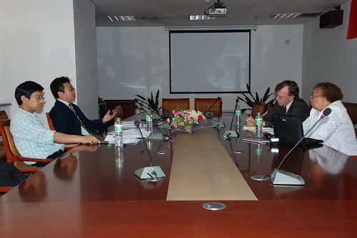6月2日上午, 林肯B体育官网平台院长Steven Lester Willborn教授、副院长Anna Williams Shavers教授以及其他两位成员,在主楼601会议室,与B体育官网平台院长单文华教授、副院长马治国教授、副院长副书记王保民副教授、以及部分博士、硕士研究生代表,举行座谈。会议伊始,单院长代表B体育官网平台对林肯B体育官网平台代表团的来访表示了欢迎,并表示希望双方利用访问的机会在师生互访、学术交流和联合办学等方面达成实质性的协议。双方在各自介绍了其法学学科的发展情况后,展开互动交流,气氛融洽,加深了双方相互间的了解。