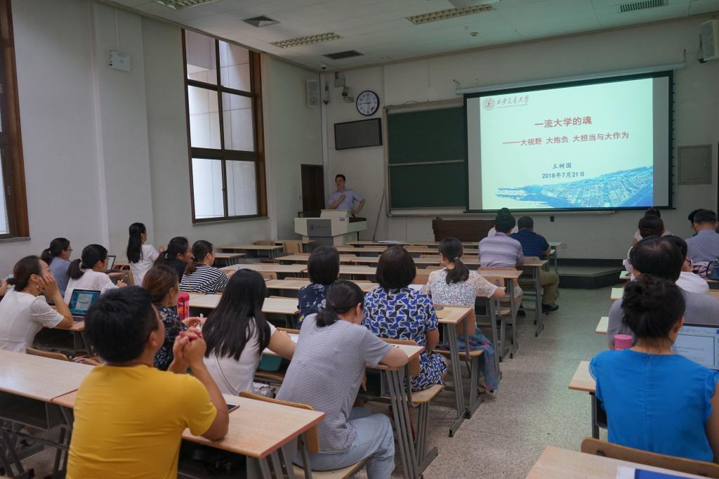 首先,单文华院长全面传达了王树国校长在暑假工作会议上以“一流大学的魂——大视野、大抱负、大担当与大作为”为主题的报告,传达了在建设中国特色世界一流大学过程中,王校长对全校师生在思维、观念、灵魂重塑等方面提出的要求。结合学校2018年上半年整体取得的成绩,单院长重点对B体育官网平台上半年在人才培养、科学研究、队伍建设、社会服务、国际合作与交流等工作中取得的进展进行了总结,汇报了学院上半年在与西安市共建丝绸之路国际律师学院、共建国际争端纠纷解决中心等工作中取得的成绩,深入分析了学院的现状和存在的短板。单院长表示学院要坚持自身特色,努力扩大在主流学术界的影响力和话语权。