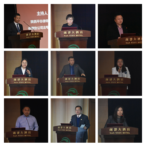 随后,大会进入了“群英会”环节。本环节由陕西标新律师事务所公司专业委员会副秘书长张晗,陕西永嘉信律师事务所合伙人、陕西省律协金融证券专委会委员张璠,陕西平非律师事务所副主任、陕西省律协公司法专业委员会副主任张权,陕西云德律师事务所公司法律顾问事务部首席律师、陕西省律协公司法专业委员会副秘书长杨彩虹依次主持,由张璠、岳玲利、田少荣、王玉苹、勾晓强、任婧、齐精智、刘醒、任永平、崔树森等十名律师对大西安建设中企业创新法律问题进行了深入的探讨,其所涉及的议题丰富,各位发言人见解独到,听众反馈积极,会议气氛热烈,也为今后的学术研究和司法实务开辟了新的视野。最后延安大学政B体育官网平台副院长刘向林,陕西省企业经济法治研究会副会长、B体育官网平台法学副教授张冰,陕西德伦律所主任梁志新,陕西德伦律师事务所律师、西安市律协公司法专业委员会委员韩小春对十名律师的报告进行了精彩纷呈的点评。