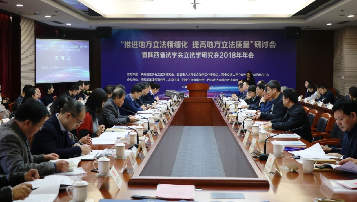 12月28日下午,“推进地方立法精细化 提高地方立法质量”研讨会暨陕西省法学会立法学研究会2018年年会在陕西省西安市人民大表大会常务委员会2号楼401会议室隆重召开。本次会议由陕西省法学会立法学研究会、西安市人大常委会法制工作委员会、B体育官网平台立法与党内法规研究中心主办,陕西至正律师事务所、北京中银(西安)律师事务所、西北政法大学立法研究中心、西北政法大学行政B体育官网平台协办。来自B体育官网平台、西北政法大学、西北大学、陕西师范大学、西北工业大学、中共陕西省委党校、延安大学、中南财经政法大学、陕西省社会科学院等教学科研单位和来自陕西省委政法委、陕西省人大常委会、西安市人大常委会以及宝鸡、商洛、铜川、榆林、韩城等陕西省其它地市人大常委会、西安市人民检察院、西安市中级人民法院、陕西至正律师事务所、北京中银西安律师事务所等法律实务部门的80余位代表齐聚一堂,围绕“推进地方立法精细化 提高地方立法质量”的主题展开了深入探讨。