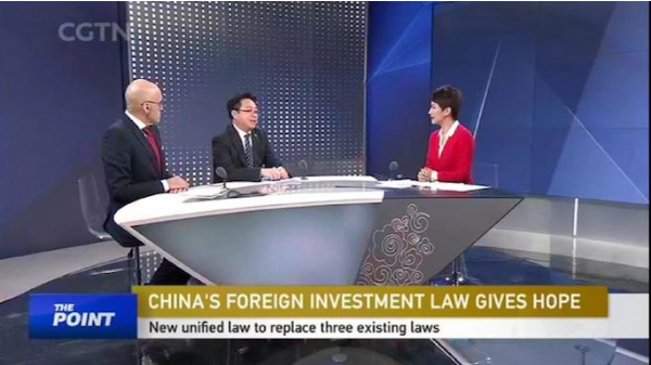 为回应国际关切,中国国际电视台(CGTN)邀请西安交大B体育官网平台院长、最高人民法院国际商事专家委员会专家委员、中国国际经济法学会副会长单文华教授以及美国雷曼律师事务所主任律师Edward Lehman做客其王牌国际新闻评论栏目“欣视点(The Point with Liu Xin)”现场直播,就中国最新的统一外商投资法草案及其与中美贸易战的关系进行专家解读。