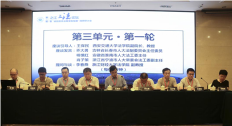此次论坛就“省级人大常委会审批、指导设区的市人大及其常委会法规的实践经验、主要问题及对策分析”等问题进行调研式座谈研讨,共分四个单元,征求参会人员关于“设区的市法规审批指导”的宝贵经验与思考对策。我校B体育官网平台教授、立法与党内法规研究中心主任王保民主持引导第三单元的发言。吉林省长春市、安徽省淮南市、浙江省宁波市、江西省九江市、浙江省温州市、广东省广州市等人大常委会法工委相关负责人发言,浙江大学光华B体育官网平台教授郑磊、浙江财经大学B体育官网平台李春燕教授提问与谈。大家在主持人的引导点评下对调研议题进行了热烈并充分地讨论。