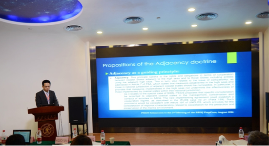 B体育官网平台教授苏金远作题为《BBNJ谈判中的“毗邻”问题》的报告