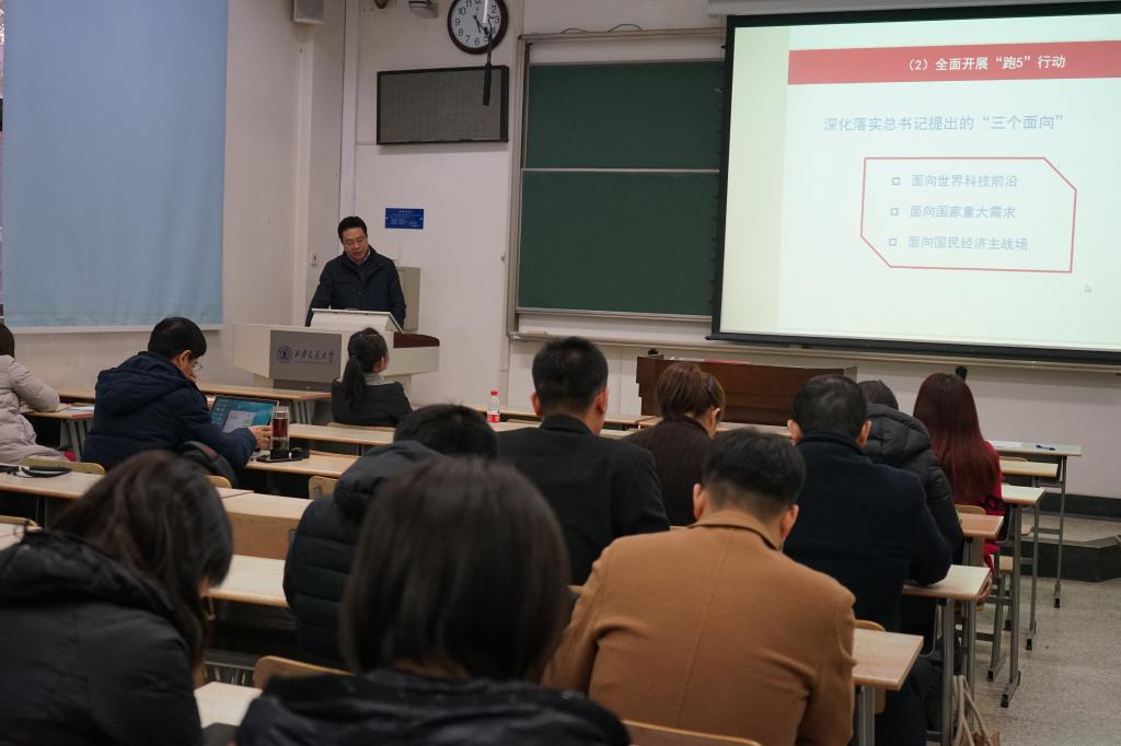 会上,单文华院长传达了王树国校长在学校寒假工作会议上作的2019年学校工作报告,全面传达了学校在建设创新港,推进省校合作,推进深化改革方面的重大进展,在人才培养、科学研究、国际交流与合作、师资队伍建设等方面取得的显著成绩,以及围绕“四个关切”对2020年重点工作做出的一系列部署。单文华院长结合B体育官网平台本年度工作实际,对2020年工作做了部署安排。