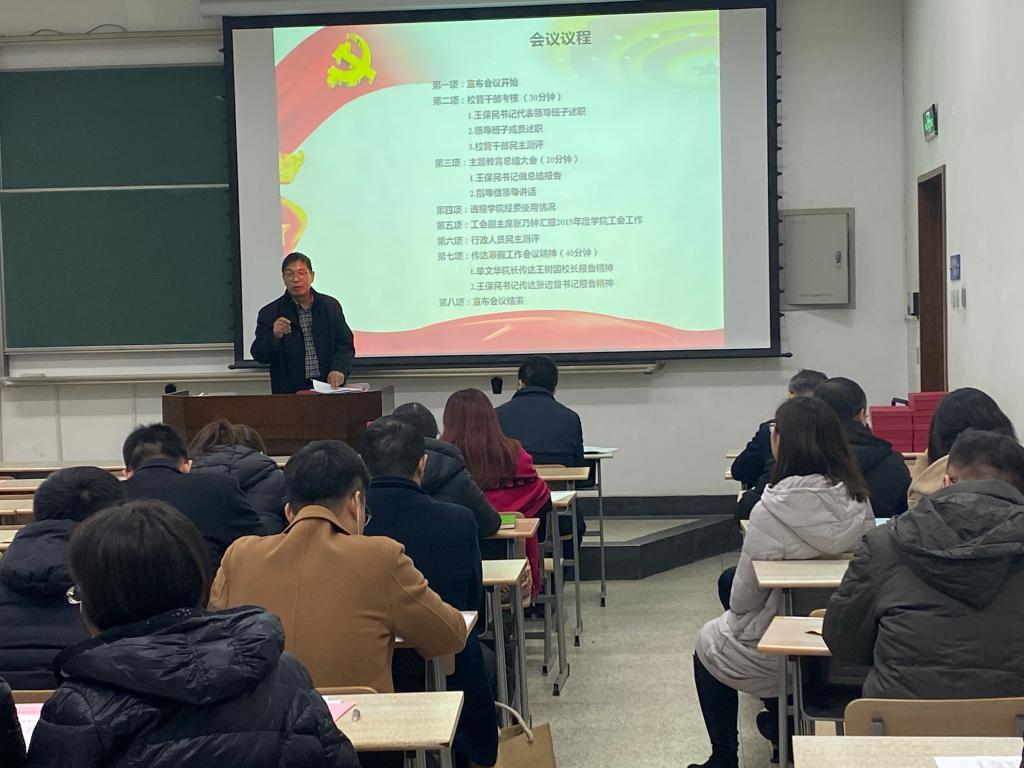 2020年1月11日下午,B体育官网平台在主B-105教室召开全院大会全面传达学校寒假工作会议精神,总结2019年工作业绩,部署2020年工作安排。B体育官网平台领导班子成员和全体教职工参加了此次会议。会议由B体育官网平台工会副主席张乃钟主持。
