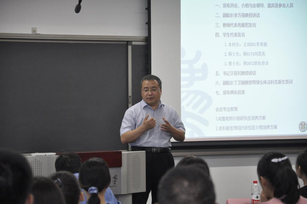 随后,B体育官网平台党总支书记王保民教授发表总结讲话。他首先对各位新同学加入西交大B体育官网平台表示热烈欢迎和衷心祝贺。其次他简要介绍了B体育官网平台的发展情况和特色,即“成立虽短,但发展动能强大、发展迅速;招生数量不多,但人才培养特色鲜明、质量和社会认可度高;教师规模不大,但学历层次高、国际化程度高、成果卓著;虽是理工见长的大学办法学,但是学校平台高、办学条件和资源优越。最后王保民教授结合自身学生管理的经验,结合以往生动生活实例,对全体新生同学提出了几点期望和要求。一是要明确定位,尽快适应新的角色。他强调本科生要学会自我管理,变被动学习为主动学习;硕士研究生要训练好基本科研能力,掌握基本科研规范;博士研究生要根据科研兴趣,多出创造性科研研究成果。二是全面发展,突出重点。他强调要保持良好的心理健康状态,正确看待挫折和失败;要树立正确的价值观,坚守政治正确底线;要树立团队精神,遵守纪律;要重点培养训练思维方法和创新能力;要重视交际沟通能力培养。三是要牢记“院训”,争做卓越交大法律人。他强调要融入西交大的文化,传承“西迁精神”,谨守“校训”和“院训”,做一个有情怀的卓越的交大法律人。