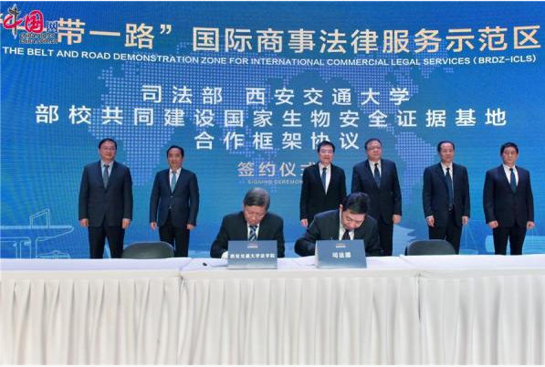 近日,司法部、陕西省人民政府在西安举办“一带一路国际商事法律服务示范区”中国—上海合作组织法律服务委员会西安中心、“一带一路”律师联盟西安中心、“一带一路”国际商事争端解决中心和国家生物安全证据基地(“三中心一基地”)揭牌仪式。司法部副部长熊选国出席并讲话,陕西省委常委、常务副省长梁桂、西安市委副书记、市长李明远、西安市委副书记、市委政法委书记韩松,副市长、市公安局局长肖西亮、B体育官网平台党委书记卢建军、B体育官网平台校长王树国等出席活动。至此,我校率先提出的建设国家级“一带一路”法律服务与法治创新示范区建议正式落地西安并初步成型。