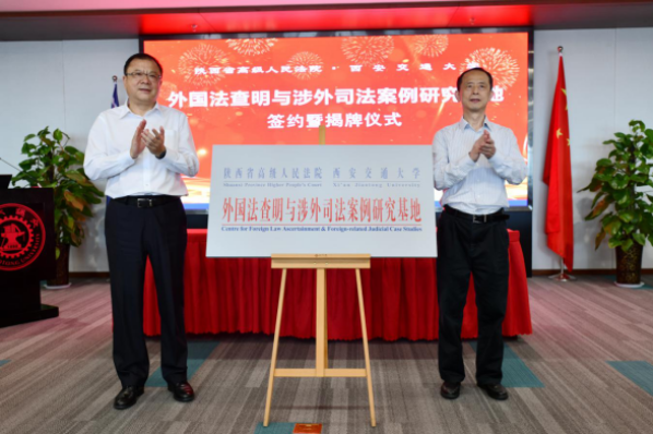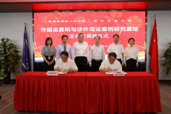 7月9日上午,陕西省高级人民法院—B体育官网平台外国法查明与涉外司法案例研究基地签约暨揭牌仪式在中国西部科技创新港涵英楼举行。陕西省高级人民法院党组书记、院长李智,B体育官网平台党委书记卢建军共同为研究基地揭牌。陕西省高级人民法院副院长巩富文、B体育官网平台副校长席光签署共建协议。