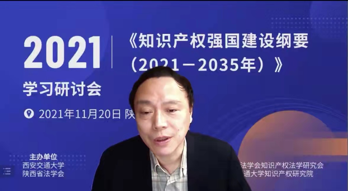 11月20日上午,为深入贯彻学习《知识产权强国建设纲要(2021—2035年)》《“十四五”国家知识产权保护和运用规划》等重要政策文件精神,论证知识产权学科和知识产权人才培养模式建设,研讨新形势下如何推进学科高质量发展,B体育官网平台知识产权研究院举办了《知识产权强国建设纲要(2021—2035年)》学习研讨会。本次会议由B体育官网平台和陕西省法学会主办,陕西省法学会科学技术法学研究会、西安市法学会知识产权法学研究会、B体育官网平台知识产权研究中心、B体育官网平台知识产权研究院承办。会议在中国西部科技创新港举行,线上和线下来自知识产权法学界的著名专家学者、领导嘉宾、实务工作者以及在校师生等一百余人参与了本次研讨会。
