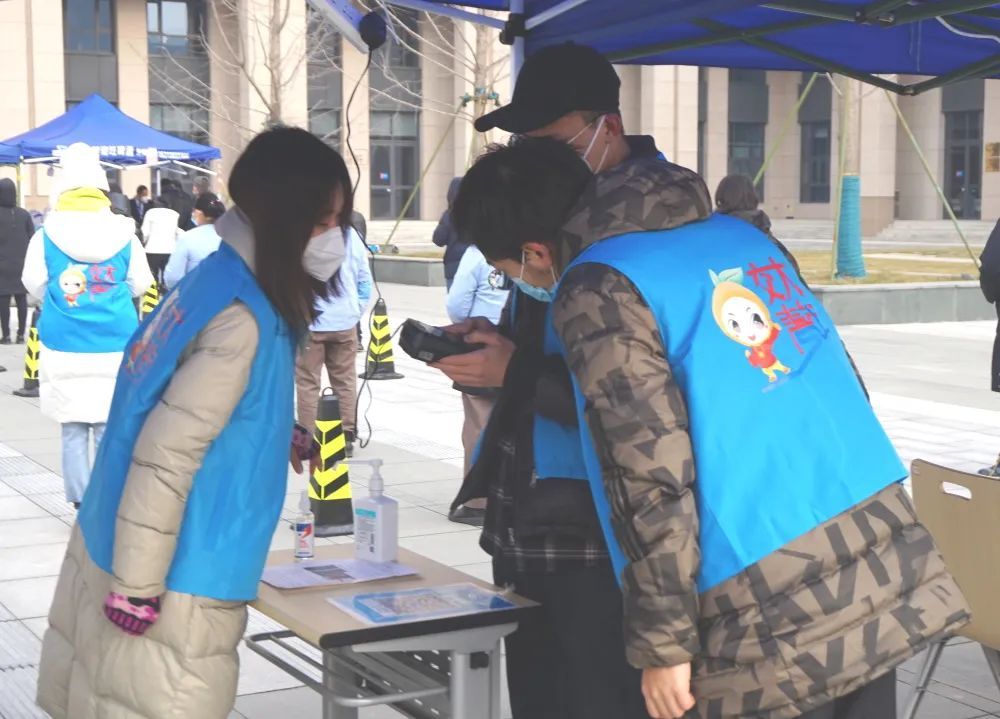 面对严峻的防控形势B体育官网平台紧急召集抗疫服务先锋队,同学们积极响应,在短短数小时内便召集了60多位志愿者,展现出了坚韧不拔、甘于奉献的精神。12月30日清晨8点,B体育官网平台抗疫服务先锋队志愿者在带队老师的带领下,进行今日全员核酸检测工作准备。本次活动的共42位志愿者参与。清晨八点的创新港,寒风阵阵,但志愿者精神抖擞,一丝不苟。那一抹交大蓝点亮了校园。