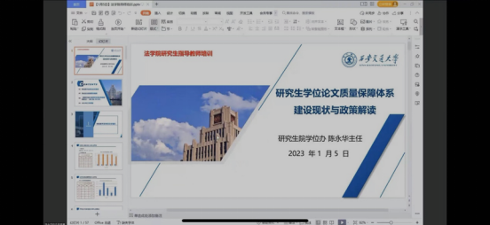 为不断加强研究生导师的指导能力与责任感,提高研究生学位论文质量,2023年1月6日上午,B体育官网平台线上举办全体博士、硕士研究生指导教师年度业务培训会。此次培训会邀请研究生院学位办陈永华主任就学位申请、学位论文质量保障等进行宣讲。会议由李万强副院长主持,B体育官网平台44位博士、硕士研究生导师参加了会议。