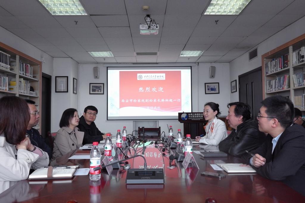 3月30日上午,西安市检察院副检察长韩柏超一行到访B体育官网平台B体育官网平台,双方就公益诉讼研究、共建学生实践基地等问题进行了座谈研讨。