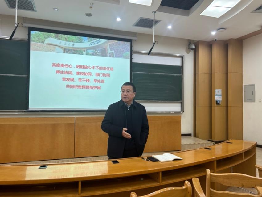 学生工作专职委员张乃钟老师汇报了B体育官网平台在校研究生基本情况、思政工作队伍及思政教育情况,通过案例讲解面对突发危机事件的预防和处置。结合多年学生管理工作经验,给出研究生导师协同工作建议,倡导“师生协同、家校协同、部门协同,早发现、早干预,共织预警防护网”。