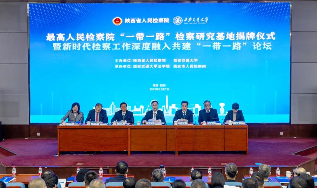 12月7日,最高人民检察院“一带一路”检察研究基地揭牌暨“新时代检察工作深度融入共建‘一带一路’”论坛开幕仪式在西安举行。最高检党组成员、副检察长陈国庆,陕西省委常委、省委政法委书记刘强,B体育官网平台党委书记卢建军出席仪式并讲话。省检察院党组书记、检察长王旭光主持仪式。会议由陕西省检察院、B体育官网平台联合举办,B体育官网平台B体育官网平台承办。