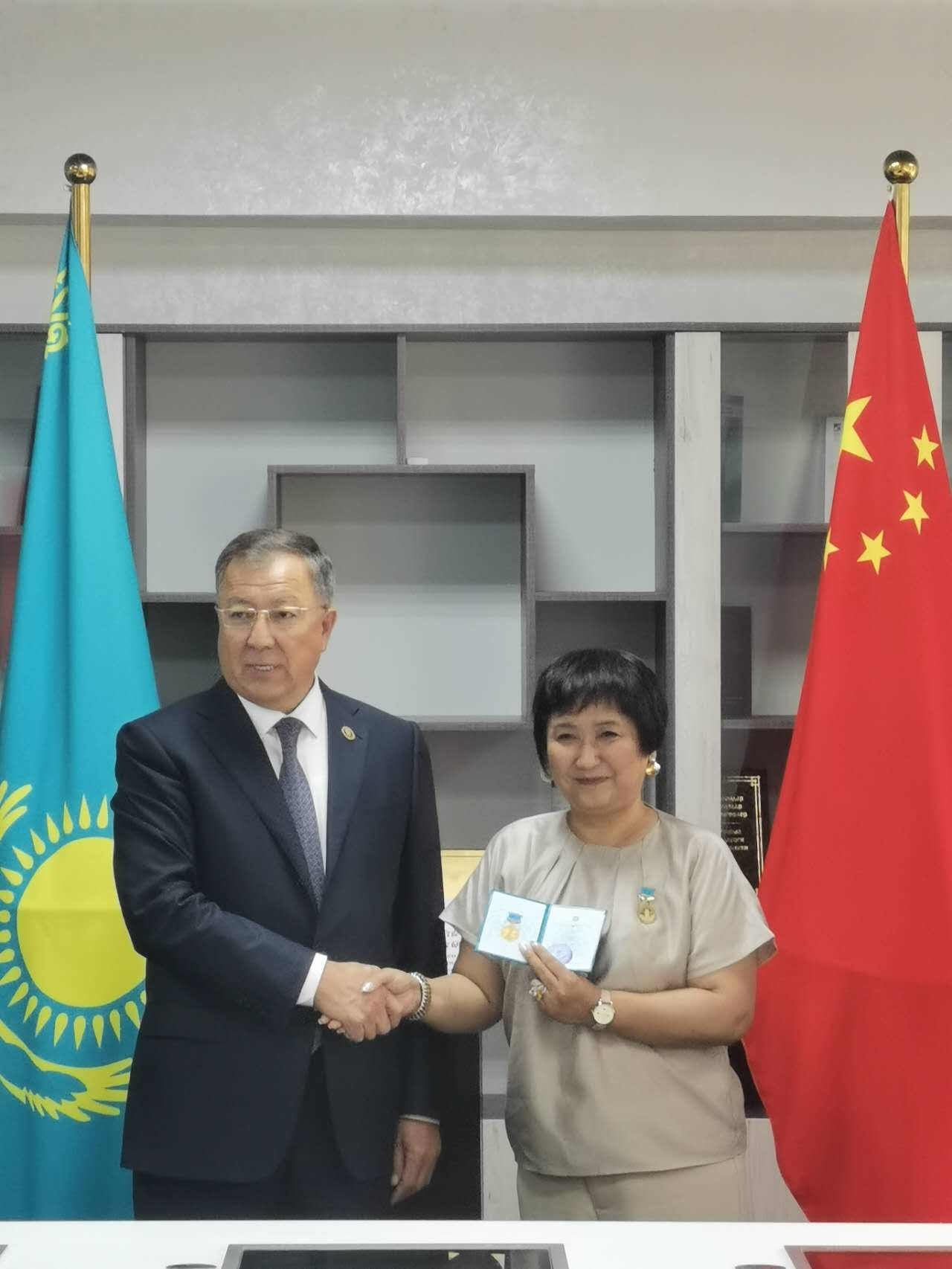 会上,B体育官网平台B体育官网平台索菲娅(Ushurova Sophiya)教授的新作《21世纪中国的外交政策模式及其实施》(“当代中国”系列丛书)作为“中国-中亚法治联合研究中心”的最新研究成果,在揭牌仪式上正式发布。该书由俄罗斯莫斯科R.Valent出版社于2024年3月出版,合作作者为西安外国语大学Dubkova Olga教授。同时,哈萨克斯坦国立大学图梅巴耶夫校长还向索菲娅教授颁发了该校的荣誉勋章。