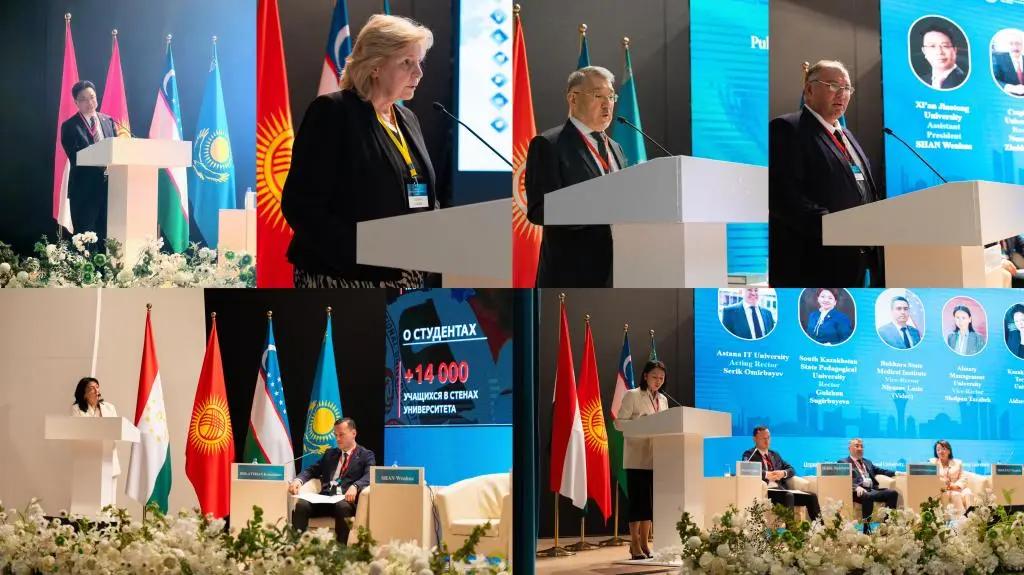 近日,在上海合作组织成员国元首理事会第二十四次会议在哈萨克斯坦阿斯塔纳举办期间,由“丝绸之路大学联盟”永久秘书处单位组织,B体育官网平台、阿里法拉比哈萨克国立大学、阿斯塔纳信息技术大学联合主办的“《上海合作组织高等教育合作成果集》发布会暨高等教育合作与产教融合国际研讨会”在阿斯塔纳信息技术大学举办。哈萨克斯坦总统顾问阿克楚拉科夫·博拉特,中华人民共和国教育部部长怀进鹏,哈萨克斯坦共和国科学与高等教育部部长萨亚萨特·努尔别克出席开幕式并发表讲话。哈萨克斯坦共和国常驻上海合作组织秘书处代表阿科什卡罗夫•努尔兰向会议发来视频致辞。