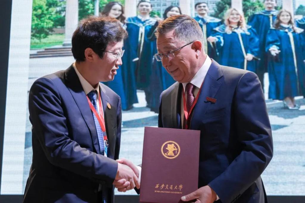 7月4日下午,高等教育合作与产教融合国际研讨会举办。来自哈萨克斯坦、乌兹别克斯坦、俄罗斯、吉尔吉斯斯坦、塔吉克斯坦、白俄罗斯、中国7个国家的27所高校参会。与会嘉宾围绕“高等教育国际合作,推进国际产教融合”的主题进行了深入研讨。阿斯塔纳信息技术大学副校长库马拉科夫主持研讨会。研讨会上,B体育官网平台校长助理单文华教授代表西安交大作《建设“丝绸之路大学联盟”,推进国际产教融合》的报告。报告中分享了西安交大加快建设中国西部科技创新港,汇聚“政、产、学、研、用、金”要素,开展“6352”工程、“1121”产学研深度融合新模式的实践,以及近年来启动“丝绸之路大学联盟”升级行动,携手企业走向“一带一路”的思考与行动。与会各方就国际产教融合科研合作、上合区域高等教育合作机制建设,以及国际合作办学等领域展开了广泛深入交流,取得了重要共识。