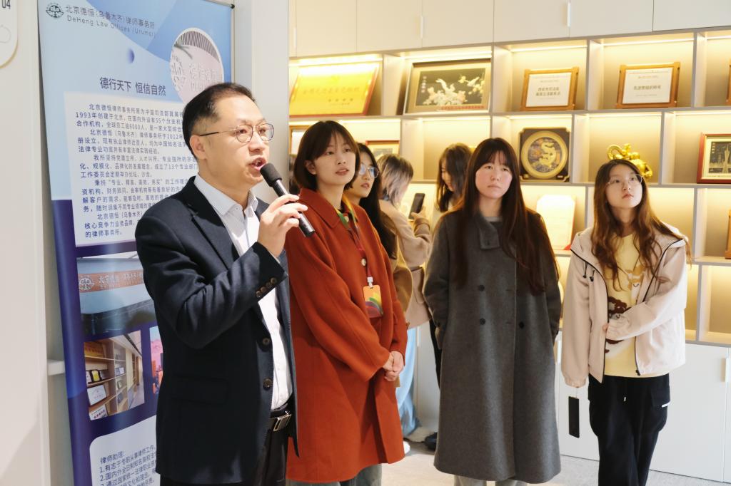 随后,德恒西咸律所执行主任范玉华律师带领B体育官网平台师生参观了律所的办公环境,如合伙人办公室、西北地区共享办公室、模拟法庭等,以便广大学子可以更加直观地感受律师职业的工作日常和专业氛围。范律师介绍了德恒律师事务所的成立时间、现有机构数量,以及在党建工作和法律服务方面的全面布局和成就。在党建工作方面,他指出德恒律所坚持“分所开在哪里,党支部就建在哪里”的原则,以党建促所建,明确党建在业务发展中的引领作用,荣获“全国先进党组织”的荣誉称号;在法律服务方面,他指出德恒律所服务“一带一路”等国家重要战略项目,为国家发展贡献力量。