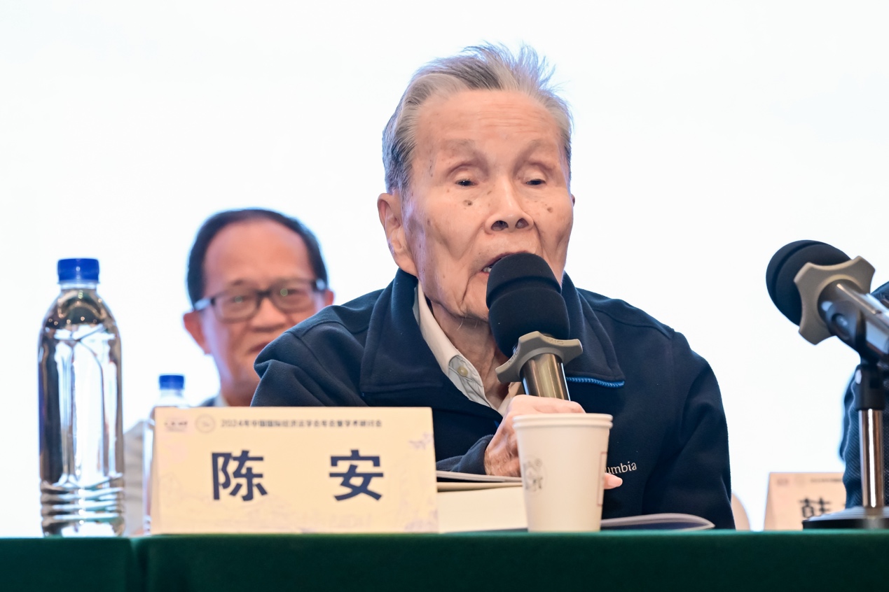 今年适逢中国国际经济法学会成立四十周年,本次年会以“涉外法治建设的使命与担当——中国特色国际经济法学创建四十周年的回顾与前瞻”为主题。会议由中国国际经济法学会主办,厦门大学B体育官网平台和厦门大学国际经济法研究所联合承办。来自全国各地的国际经济法学界专家学者齐聚一堂,围绕年会主题展开了深入研讨和交流。95岁高龄的中国国际经济法学会荣誉会长陈安教授亲临年会致辞,并全程参与了大会专题报告及“庆贺中国国际经济法学会成立四十周年系列活动”。