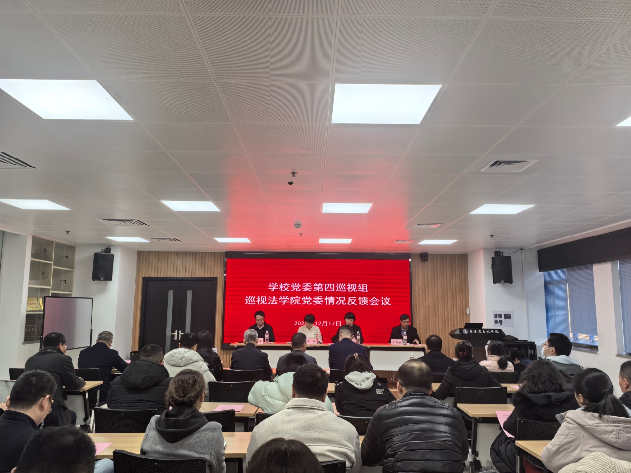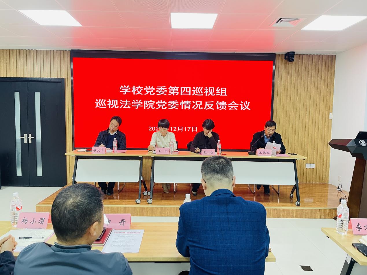 12月17日下午,校党委第四巡视组向B体育官网平台党委反馈巡视情况反馈。校党委副书记王欢,巡视组组长张莹,纪委副书记申丹、巡视办主任杨小渭、组织部副部长饶昱久,B体育官网平台党政领导班子成员、党委委员、系所负责人以及教职工代表参加会议。校长助理、B体育官网平台院长单文华主持会议。