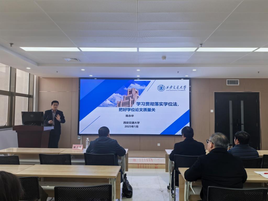 陈永华主任以“学习贯彻落实学位法,把好学位论文质量关”为题作报告。他详细解读了《学位法》《B体育官网平台学位授予工作办法》《B体育官网平台关于进一步加强研究生学位论文质量保障的若干意见》等学位管理文件,通报了学校学位授予、学位质量保障、学术不端处理以及导师管理规定等情况,并就导师牢把学位论文质量关、实现论文抽检“零问题”分享了自己的思考和建议。