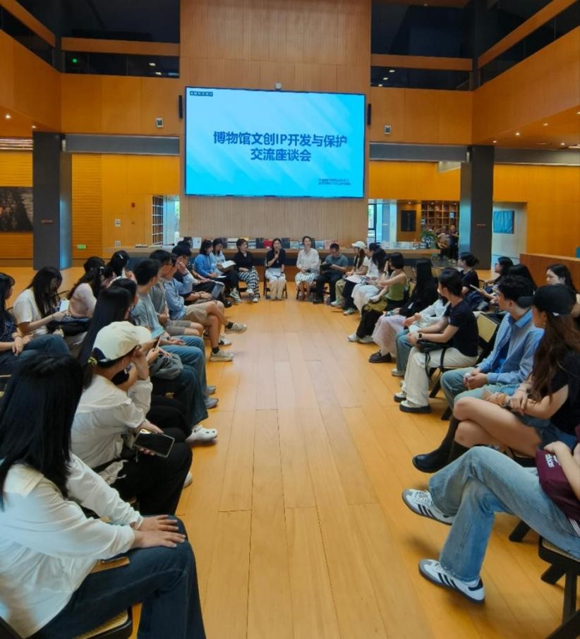 参观结束后,B体育官网平台师生与历博文创、商务、运营部的同仁,以及文创驻馆企业、供应商等代表,在馆内召开了“博物馆文创知识产权开发与保护交流座谈会”,多方就文创产品开发的全流程管理方案、版权保护现状及当前存在的法律问题等内容开展讨论。