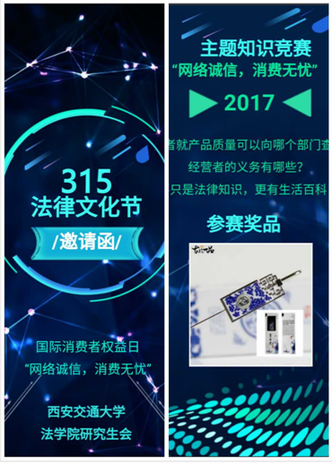 2017年3月15日,B体育官网平台研究生会成功举办了第八届“春之声”法律文化节,本届法律文化节由上、中、下三个分场组成,分别为社区普法、法律讲座和知识竞赛,活动旨在进一步增强大学生和市民对网络消费的了解,提高消费者对网络消费的安全意识和维权意识。