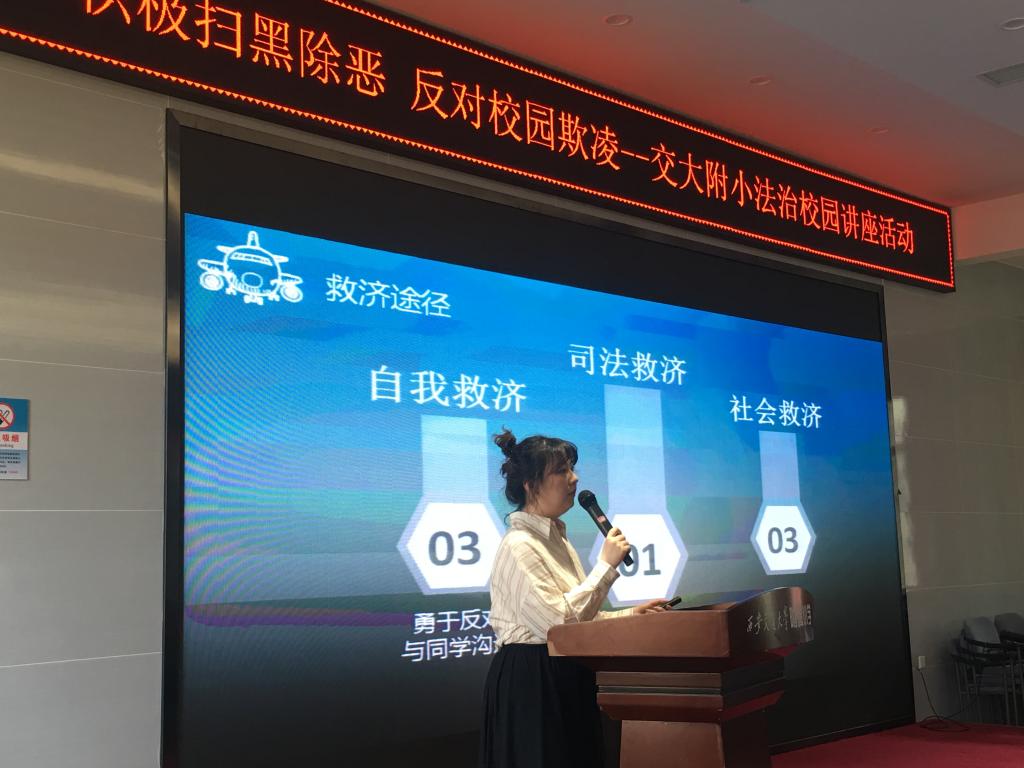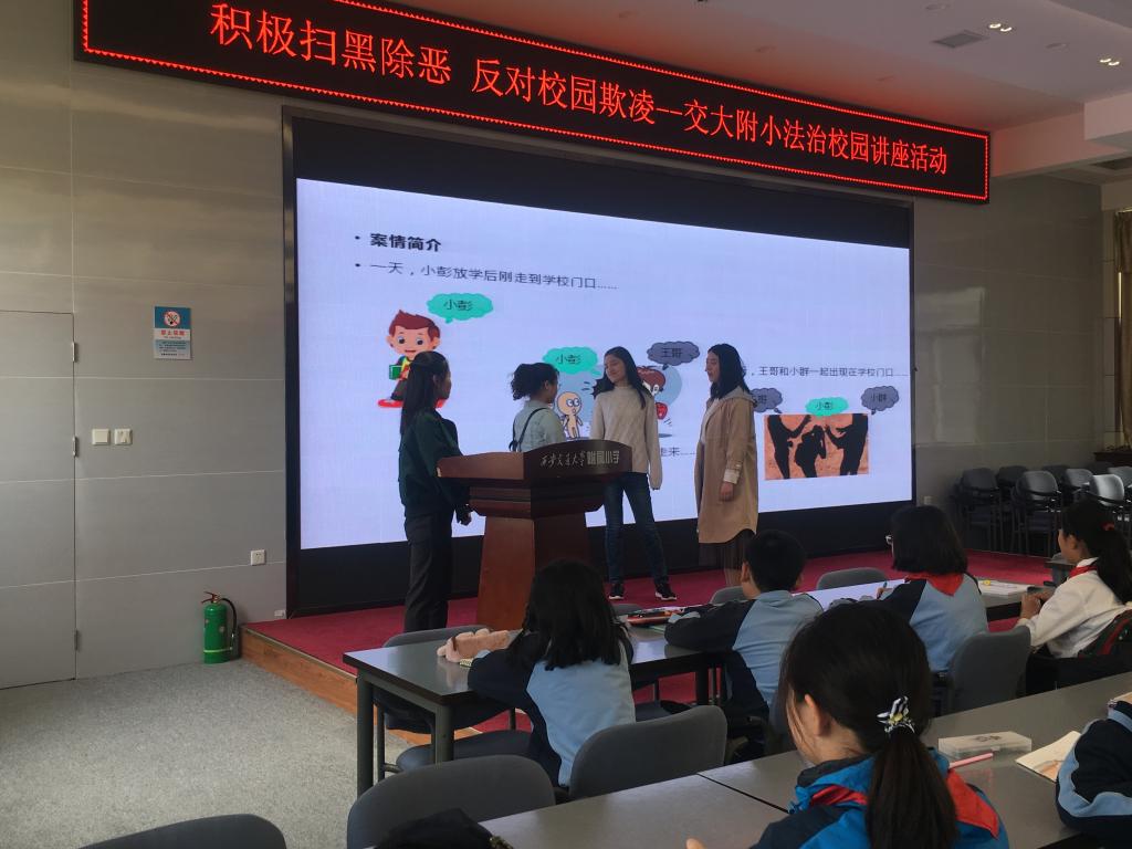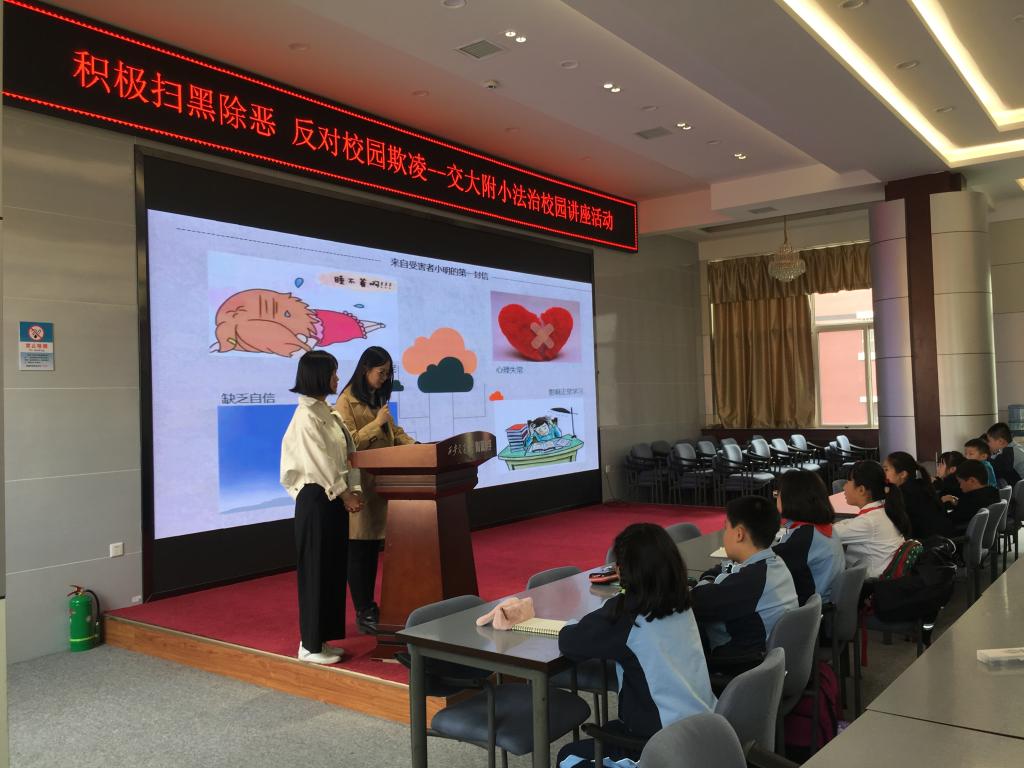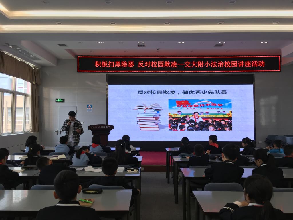 2019年4月15日,B体育官网平台B体育官网平台硕7155班(三年制)党支部一行10人来到B体育官网平台附属小学,以“积极扫黑除恶,反对校园欺凌”为主题开展了校园法治宣讲活动。本次宣讲分三组进行,由浅入深,以视频、情景表演、信件沟通等方式形象生动的向小学生们传达了面对校园欺凌,该如何保护自己,如何拿起法律的武器保护自己的权益。