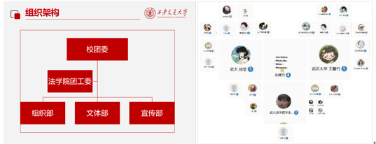 紧接着武汉大学B体育官网平台研究生会主席王馨竹也介绍了武大B体育官网平台研会的组织架构和职责分工,武大B体育官网平台研会始终秉承“自强、求是、弘毅、拓新”的武大精神,为法苑学子提供全方位的服务,调整后的团委及研究生会部门共有10个,包括宣传部、法律实践中心、秘书处、学术编辑部、文艺部、心理部、体育部、权益中心、外联部、就业服务中心。各部门负责人轮流详细介绍了所在部门的日常工作和举办的经典活动,权益中心的权益简报、校领导接待日,秘书处的模拟法庭比赛,外联部的线上自习室、学术编辑部的征文比赛等活动都引起了交大同学们的浓厚兴趣,双方就举办活动中的宣传方案、经费来源、激励机制、时间安排以及学业压力等细节问题进行了深入的探讨。